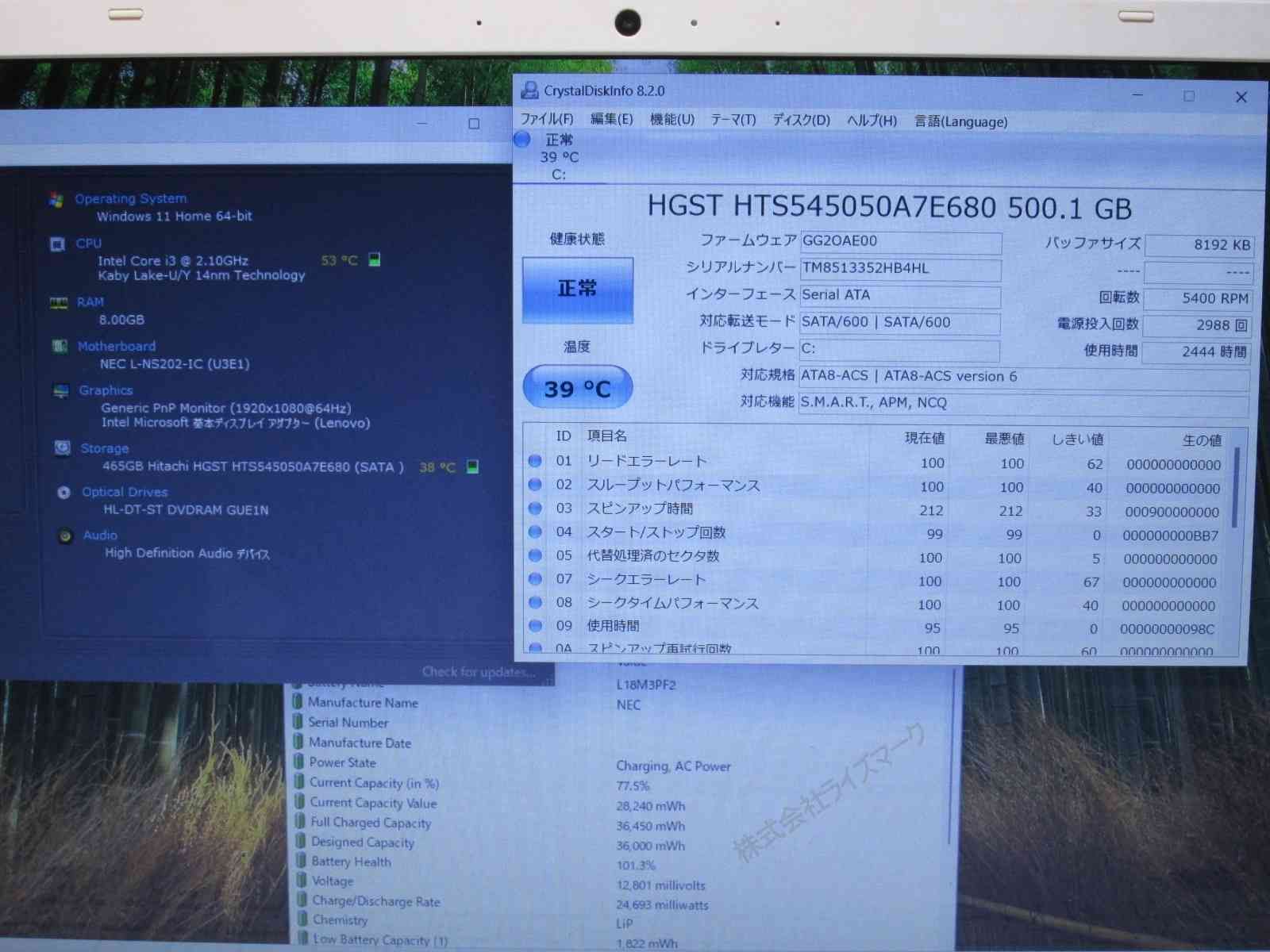 OSインストール:Windows11 Homeインストール済み