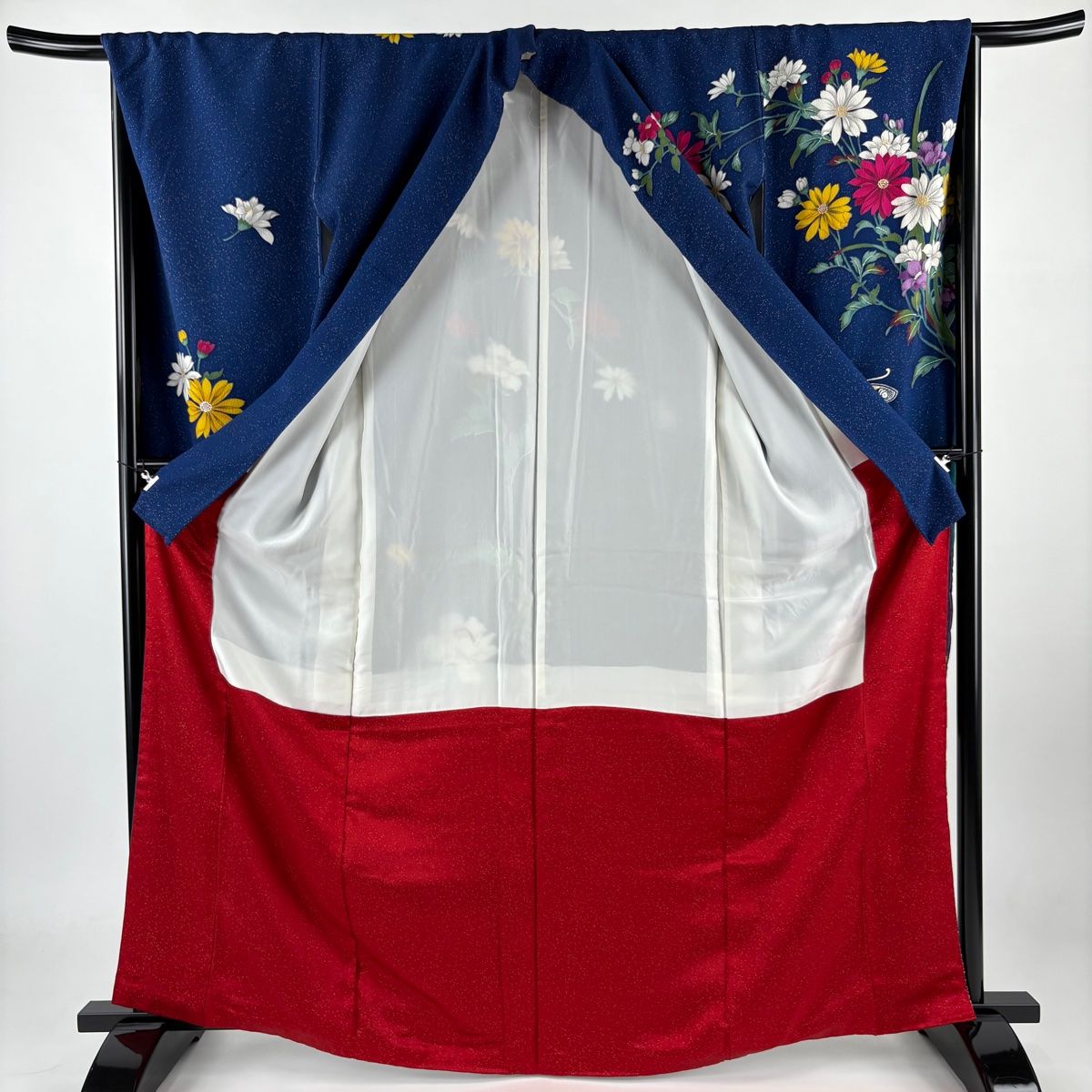 振袖 身丈166.5 cm 裄丈68 L 袷 牡丹 花唐草 金銀彩 ぼかし 紺色 正絹 秀品