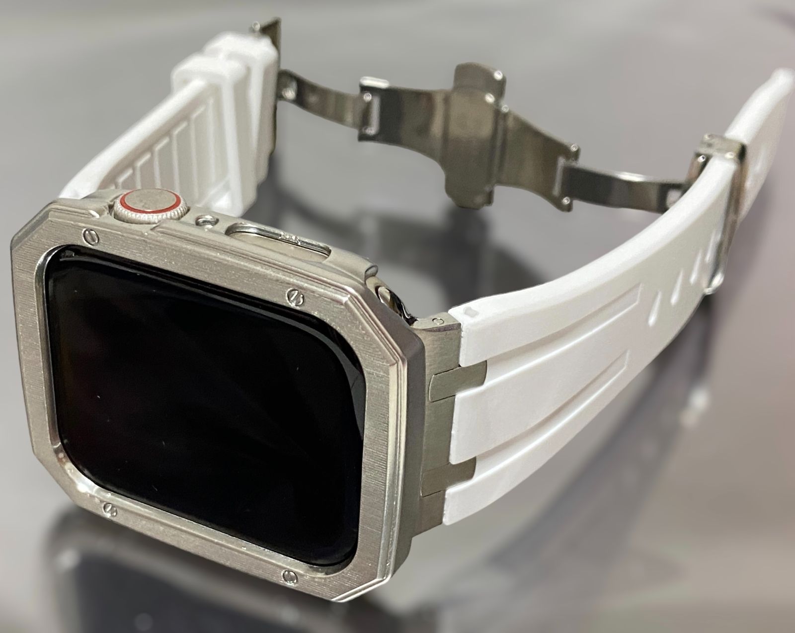 シルバー ホワイト アップルウォッチ ラバーベルト Apple Watch ケース カバー 40 mm 41 44 45 49 用