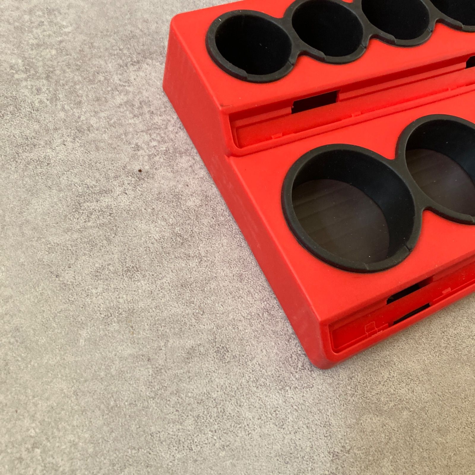 画像の商品下にあるレール束が、ソケットはめこむ箇所のサイズ表記のレールとなっており、はめこむとパッケージの絵の様なソケット収納数値表記となります。