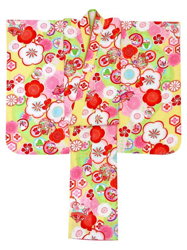 七五三 着物 7歳 女の子 式部浪漫 ブランド 総柄 小紋柄 の着物 合繊 黄色 梅 SR 7 pk 1908