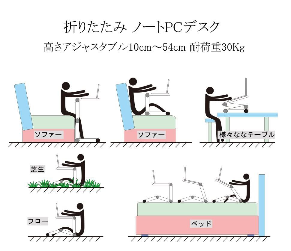 折りたたみ機能もあるし、立てかけて使えます。ノートパソコンを長時間使っていて、腰痛や肩こり、目の疲れに悩まされてる方にオススメ!ご注意:本体の重心がうまくいかない状態で利用しないでください。