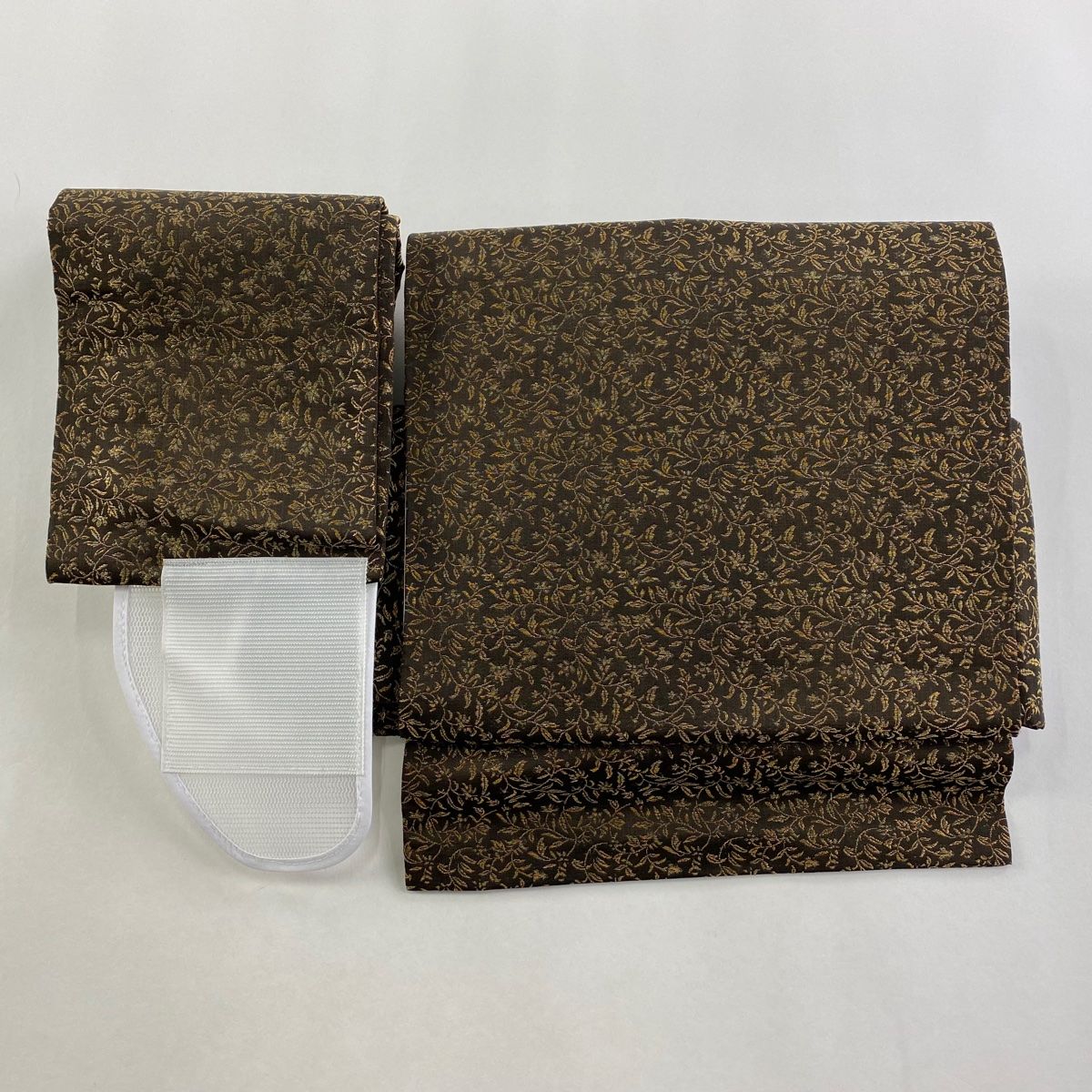 付け帯 秀品 作り帯 花唐草 金糸 焦茶色 正絹