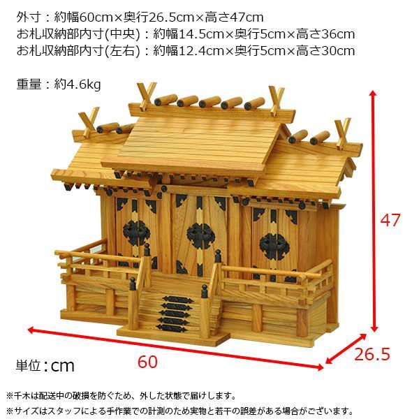 幅60cmで存在感のある豪華な屋根違い三社タイプ