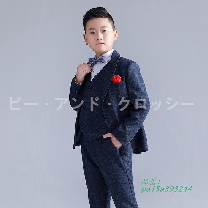 子供服 スーツセット 男の子 フォーマルスーツ 裏起毛 キッズ 発表会結婚式 卒園式 太め チェック柄 卒業式 5点セット 大きいサイズ pai 5 a 393244
