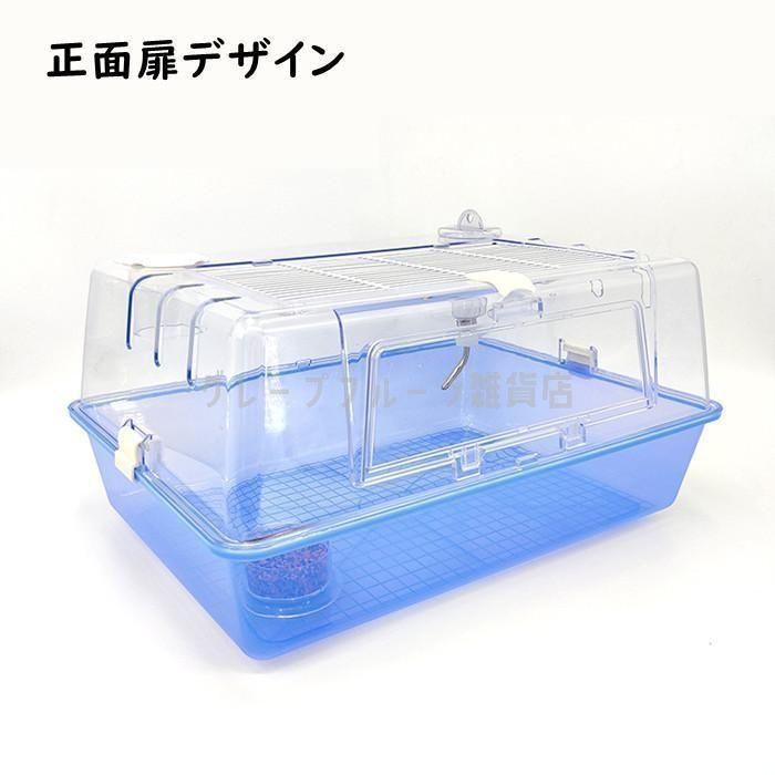 ハムスターケージ ハムスターハウス 飼育かご 広い 透明 アクリル 組立簡単 小屋 大空間 55 cm 前扉 分離式 エサ皿 給水ボウル