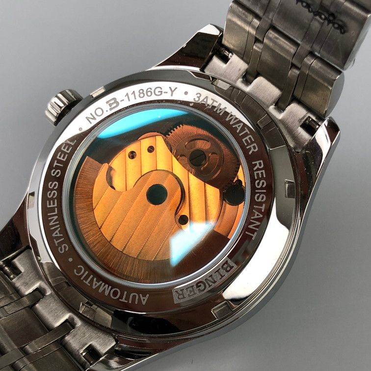 品 BINGER B-1186 G-Y 腕時計 シルバー 自動巻き 手巻付き 197-250710-SY-09-iwa