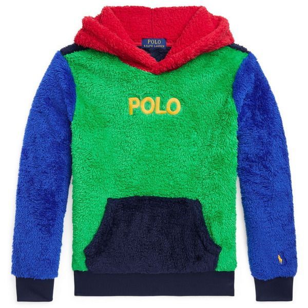 男の子用アイテム。暖かくてやわらかい、フリース素材のプルオーバーパーカー。外側は毛足の長いファーフリース、内側はボアで保温性バツグン!胸元にPOLOの刺繍、左袖にポニー刺繍でラルフをしっかりアピール。