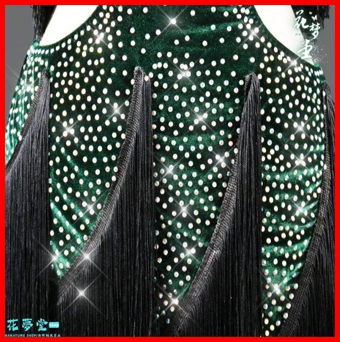 25年 社交ダンス衣装 ラテンワンピースドレス グリーン ブラック オーダーメイド