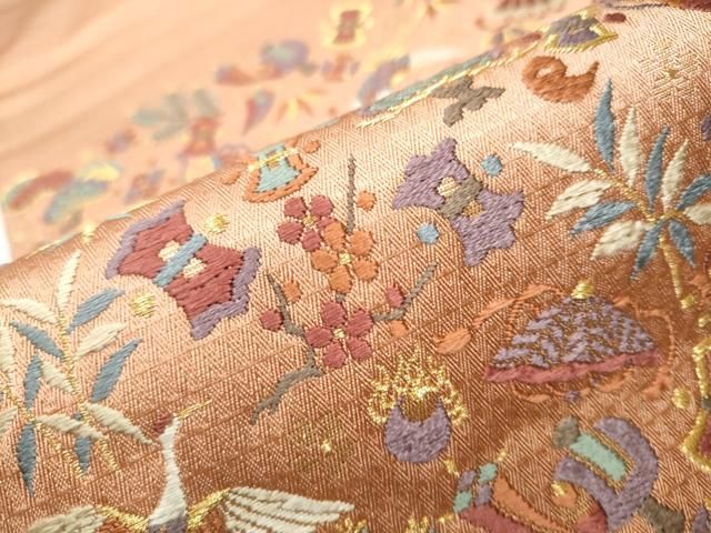 平和屋着物 六通柄袋帯 唐織 あけぼの繭 華寿秀宝文 金糸 正絹 hy