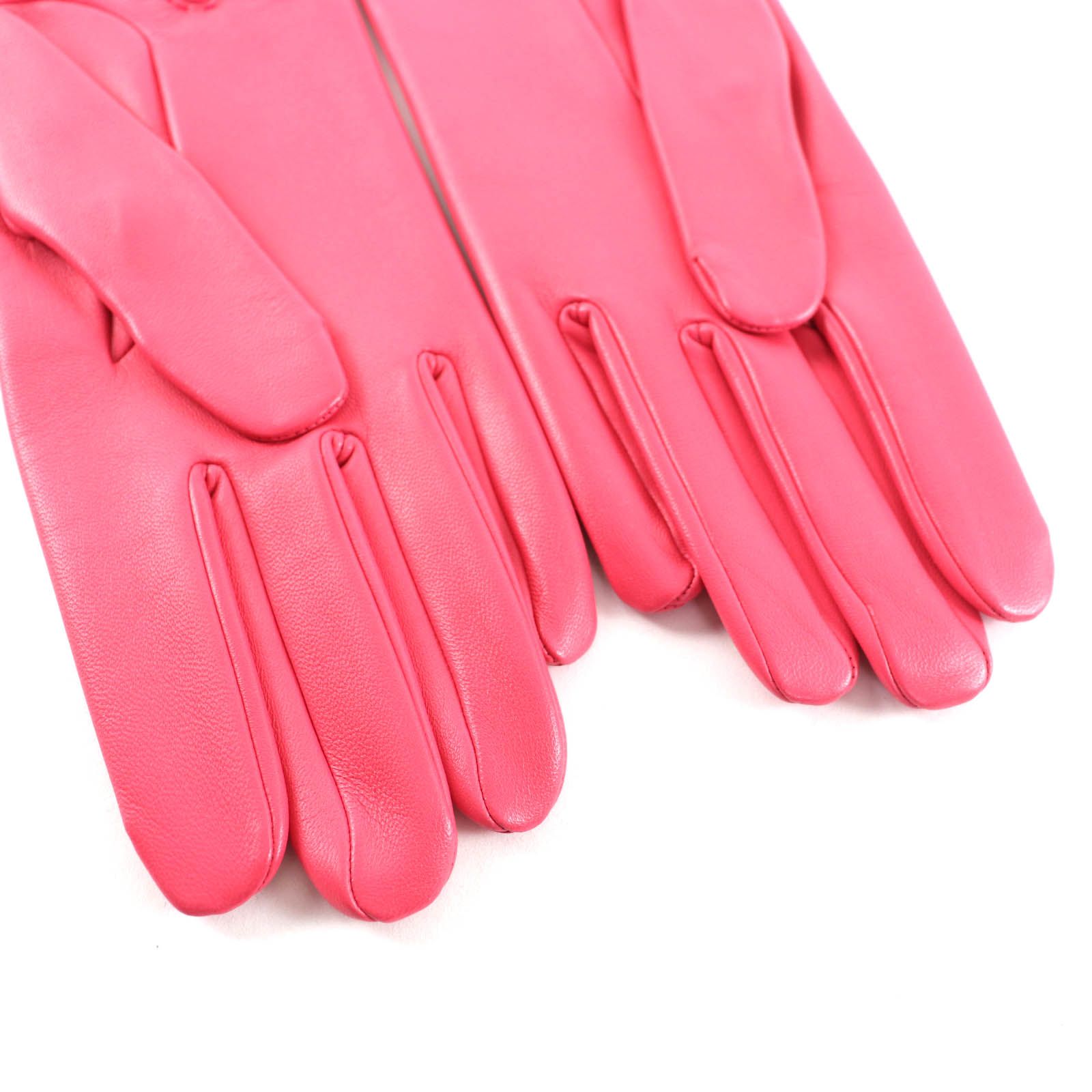 HERMES エルメス ハート ピンク アニョー グラッセ クルード セル セリエ金具付 レザー グローブ 手袋 7.5 き フランス製 レディース