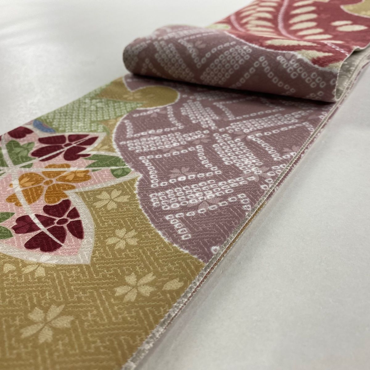帯の幅が半分で扱いやすい半幅帯でございます。