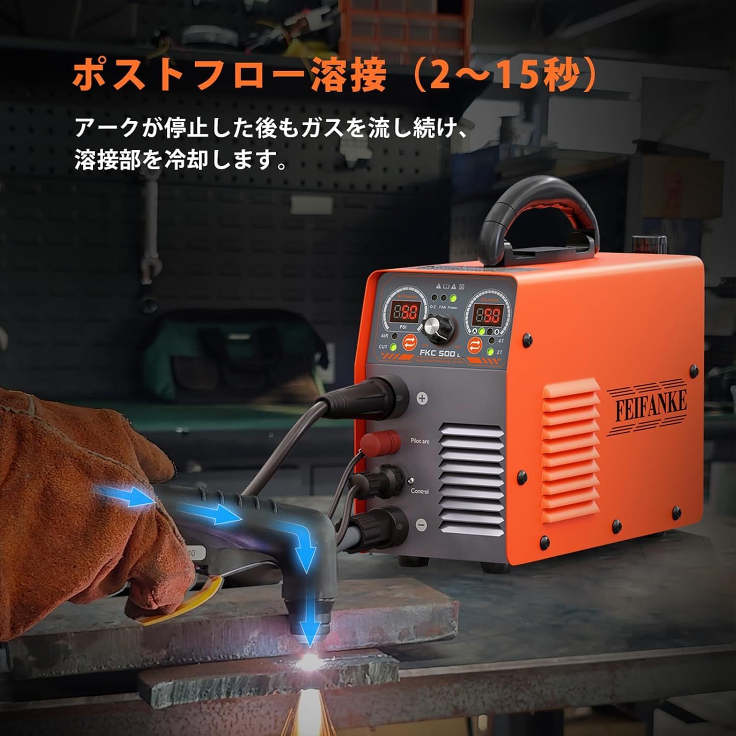 FEIFANKE プラズマカッター 100v/200v兼用 最大切断厚25mm プラズマ切断機 50A 低周波 IGBT 非接触パイロットアーク切断機 2T/4T制御 調整可能なポストフロー 厚いアルミニウム金属の切断 FKC-500L