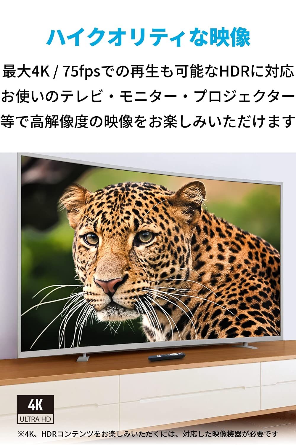 ハイクオリティな映像:超⾼画質出⼒の4K(75fps)かつUHD