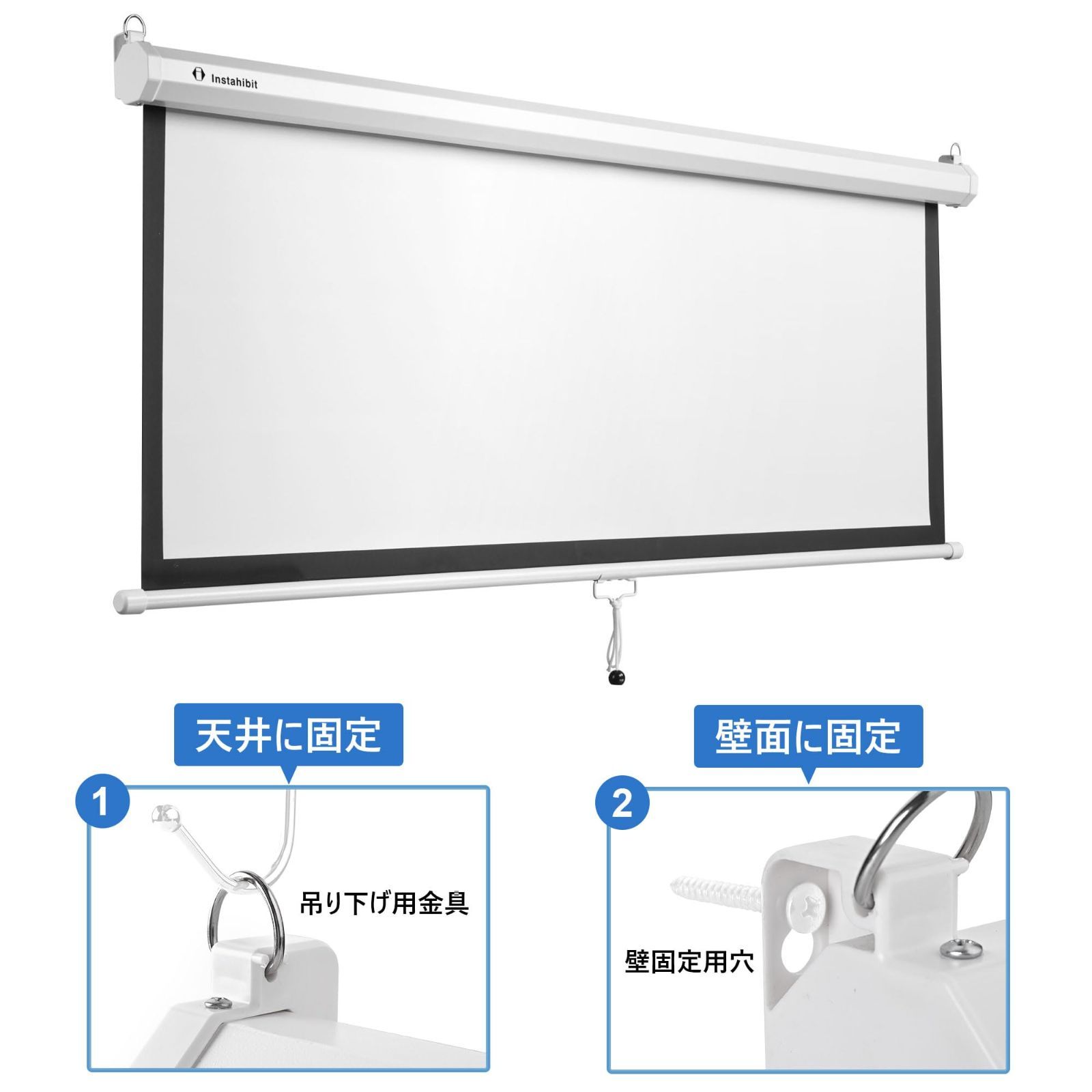 手動巻上げ 投影スクリーン ホームシアター プロジェクタースクリーン 家庭用 教室用 会議用 巻き上げ 壁掛け 天吊り ロールスクリーン プロジェクター用 吊り下げ 4 3 72インチ スクリーン プロジェクター Yescom