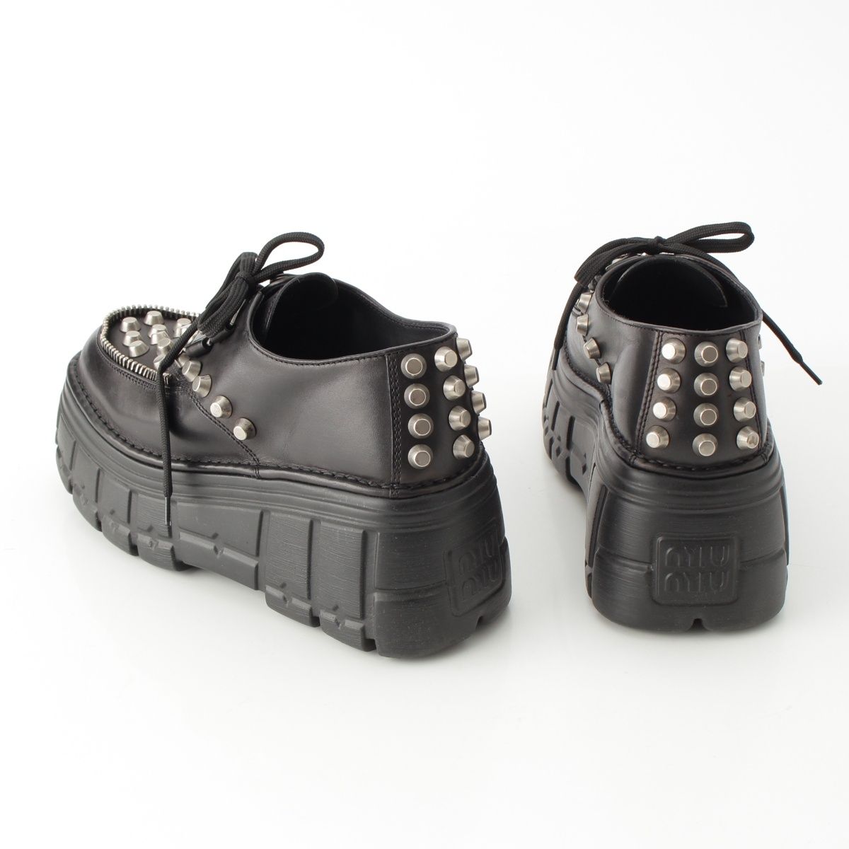 ミュウミュウ レザー スタッズ 厚底 ジップモチーフ ドレスシューズ 5 E 636 D ブラック 38