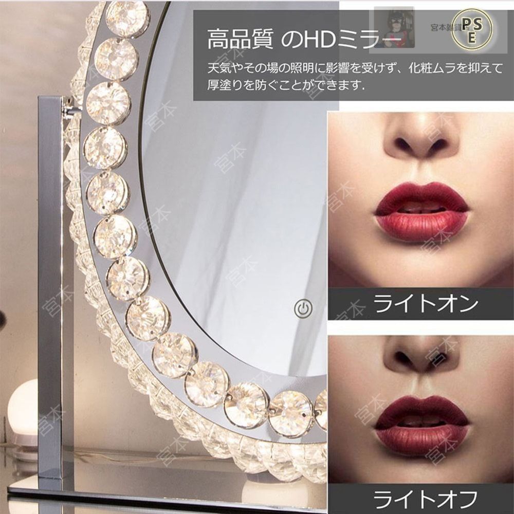 女優ミラー ライト付き クリスタル 52 46 cm おしゃれ 三色調光無段階調光 卓上 タッチスイッチ 記憶機能 ハリウッドミラー 大型 化粧鏡 水晶 フレームレス