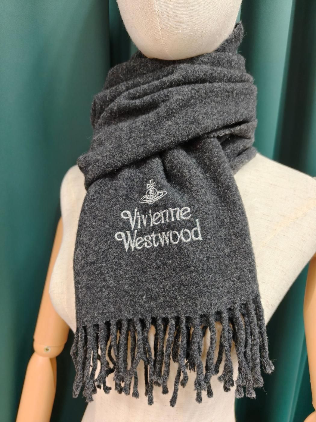 Vivienne Westwood ヴィヴィアン ウール フリンジ マフラー グレー 管理番号 10461