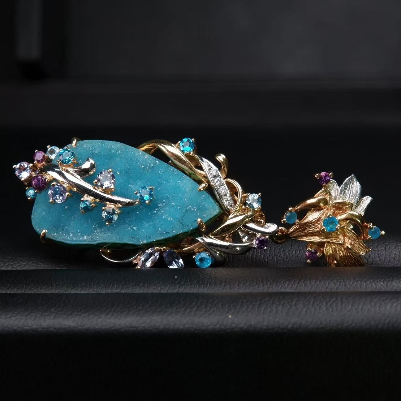 クリソコラ ダイヤモンド0.04ct ペンダント ブローチ