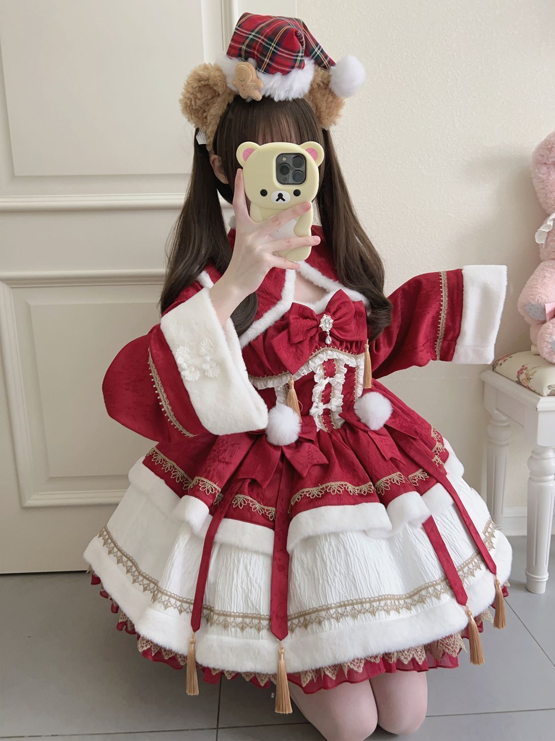 洋装 秋冬新年 長袖プリンセス風OPドレス 展開 華やかな装飾リボン付き 高品質デザイン 推し活 プレゼントにも最適