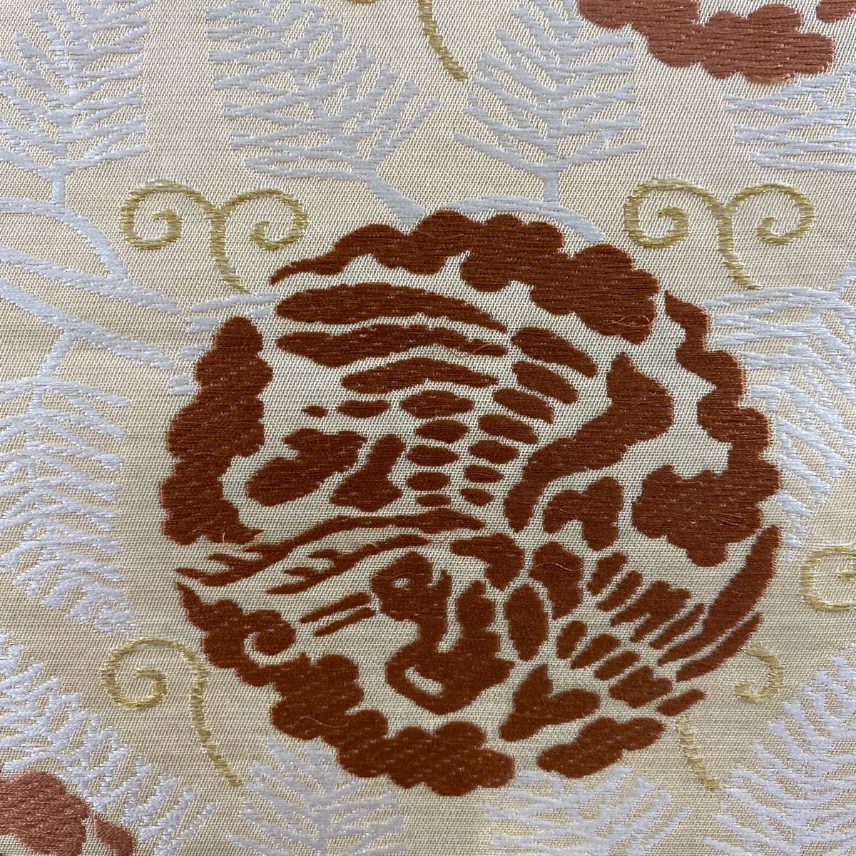 締め跡沿いに薄汚れと使用による目立つシワ、前柄お太鼓間など表地に所々唐織の糸ゆるみがございます。