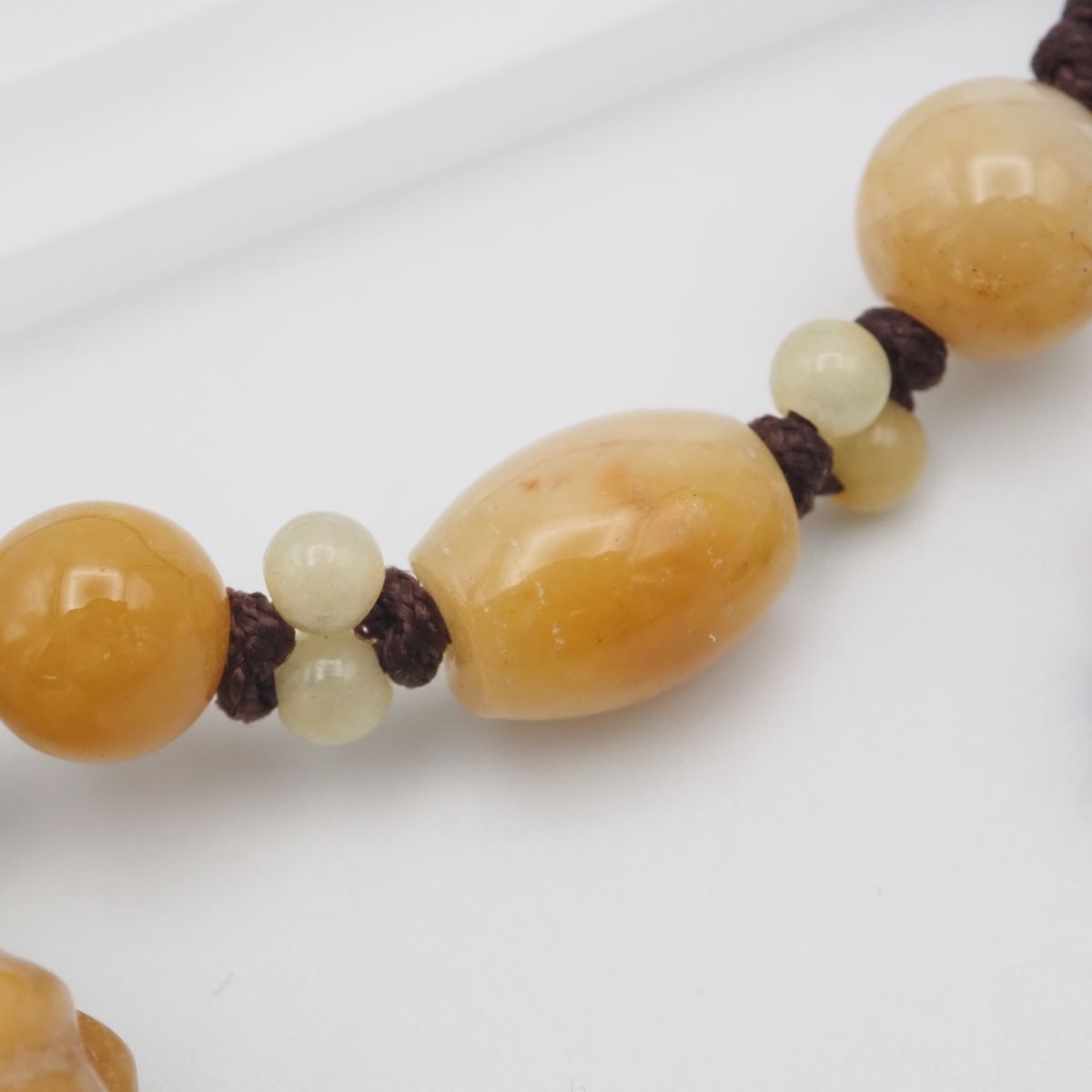 H 524 黄翡翠 ヒスイ ブレスレット 花彫刻 紐 デザイン アンティーク