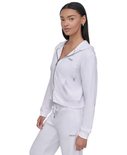 ダナ キャラン ニューヨーク レディース パーカー スウェット アウター Women s Cotton-Blend Stud-Logo Full Zip Hoodie White