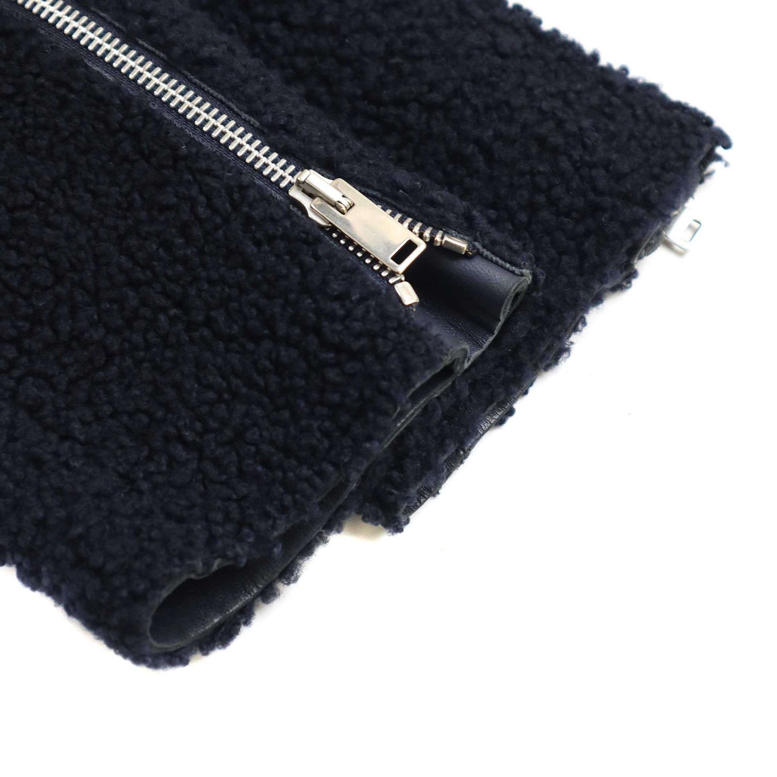 CELINE セリーヌ by Phoebe Philo ムートン レザーライダースジャケット 2 5 K 10 5164 ネイビー 34