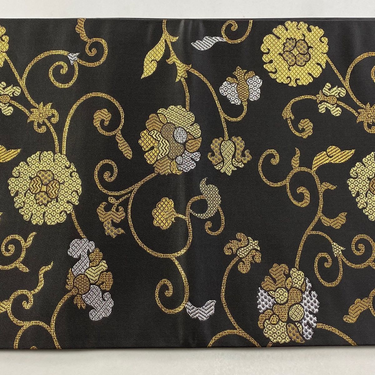 袋帯 龍村晋 落款 花唐草 金銀糸 箔 灰色 全通 正絹