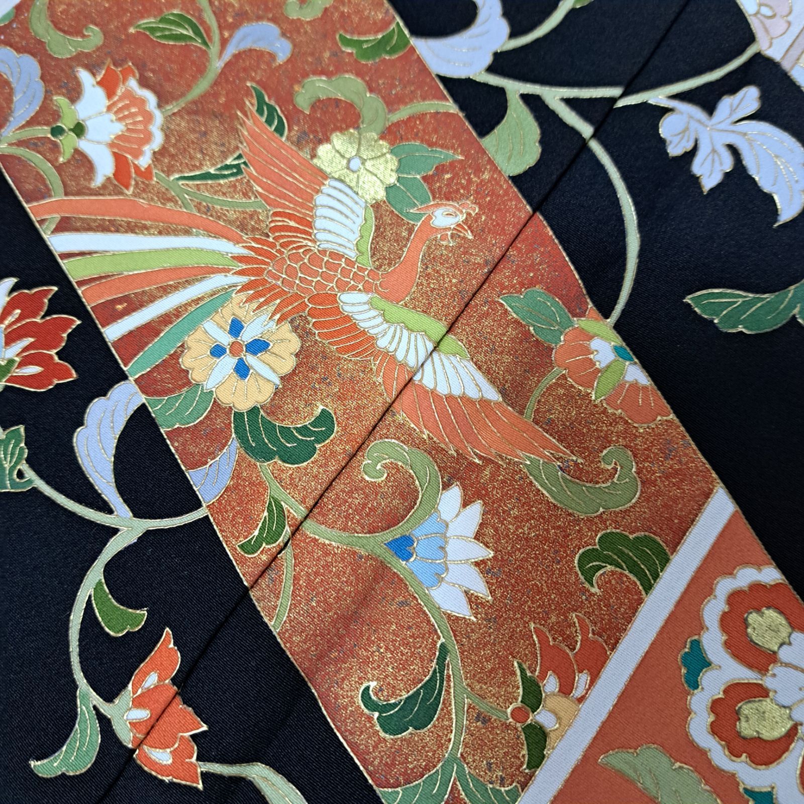 黒留袖 結婚式 親族結婚式 フォーマル 舞台 衣装 コスプレ 正絹 袷 着物 きもの kimono 鳳凰 唐花 更紗文様 木瓜紋
