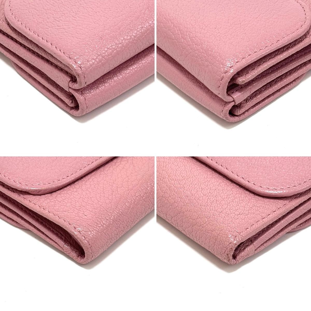 ミュウミュウ 三つ折り財布 コンパクトウォレット ミニウォレット 財布 wallet ピンク pink ゴールド g レザー 本革 ロゴ MIUMIU
