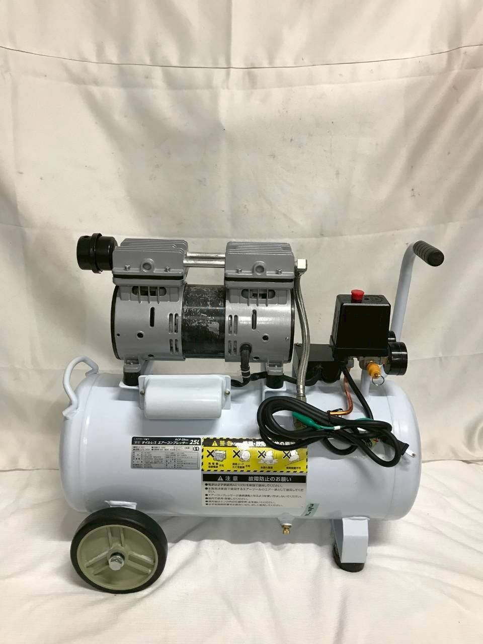 北見市発 EARTH MAN 静音オイルレスエアーコンプレッサー25 L ACP 25 SLA 2018年製 シルバー DIY エアーツール