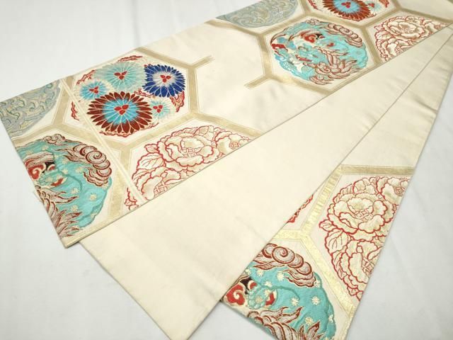 平和屋着物 アンティーク 大正ロマン 六通柄 京袋帯 唐獅子 亀甲花文 金糸 正絹 hy