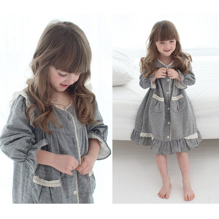 ナチュラルなグレー地に生成り色のレースのエレガントさが素敵な雰囲気を演出する、綿100女の子パジャマワンピースです。