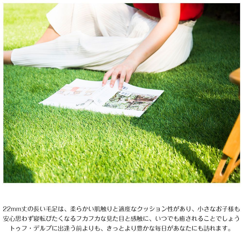 DTEX:7000 TEM説明 ・まるで本物のようなリアル人工芝。 ・人工芝を敷くことで、庭が自然な雰囲気になります。 ・リアルロール人工芝を使って、憧れの芝生の庭が出来上がりました。 ・季節や場所のコンディションに左右されず一年中青々とした美しい状態をキープできます。 ・鉢植えの植物との違和感は全くと言っていいほどありません。 ・敷いた場所が息抜きや癒しの場所にもなりますので、多くの効果が期待できます。 ・人工芝を使って、お手入れフリーな年中美しい緑のお庭を手に入れちゃいましょう! ・季節や場所のコンディションに左右されず一年中青々とした美しい状態をキープできます。 ・お子様も気軽に遊んでいただけ、敷いた後の管理の手間も少なくてすみます。 ・リアル人工芝でお庭が変わる!除草の手間も省け、お庭の楽しみも広がりまさに一石二鳥。 ・この機会にお庭のリフォームに挑戦してみては? ITEM規格 ■[材質区分] ストレートパイル:PE ウェーブパイル: PP 葉:ポリエチレン樹脂 ■[選べる色] 青緑・秋色 ■[草丈] 20mm ■[草形] 復元性優れるC字パイル ■[基布] PP+PP+SBR併せて3層構造 ■[密度] 目の細かさ(葉の密度):33万束/m2 ■[草色] 色合い:枯れ葉混じり 主パイル色(ストレートパイル):濃い緑+薄い緑 副パイル色(ウェーブパイル): 緑色+枯黄 選ばれる理由は 【3つの耐久性】 ①UV加工で色落ちしにくい ②高密度で摩耗しにくい ③引っ張っても抜けにくい 【3つの安全性】 ①SGS認定 ②有害物質を含まない ③「透水穴」付き 暮らしに役立つ機能 SGS認定 品質管理で、安全性を確認できます。 品質管理で、安全性を確認できます。 UV加工 UV加工で色落ちしにくい。 紫外線に当たることで、時間の経過に伴い、色落ちは進んでいきます。 ただし、当店の人工芝は葉にUV加工で劣化のスピードが遅く、短期間で急激に色落ちすることはありません。 C字パイル加工 へたりにくく、復元性が優れます。 近年、小さいC字型は特に流行っています。直立性悪い芯付けの糸より、C字パイル加工でへたりにくく、復元性が優れます。 高耐久の3層基布 ダブルPP+SBRゴム層で高耐久 シングルPPより、3層基布で耐久性がよく、引っ張っても抜けにくい。 草丈が20mmと長い クッション性UP、かなりボリュームがあってしっかりしています。 草丈が20mmと長いので、ふかふかとした踏み心地! 柔らかくて葉の密度も十分なので裸足で踏むと気持ち良いです! 一般の人工芝より一本一本の葉が細いので、リアルな上に裸足で歩いても気持ち良いです。 こだわりの4色配合で立体感UP 色合い:枯れ葉混じり 高密度に植えられた2色のストレートの芝生に、カールした2色の枯草を混ぜることで、より本物に近い風合いを表現しています。 芝をよく見てみると、枯れた風合いの芝も含まれていてかなり本物に近い質感です。 1.ストレートパイル:濃い緑 鮮やかな緑色で一年中芝をきれいに見せてくれます。 2.ストレートパイル:薄い緑 黄緑色の芝で濃淡をつけて、より自然の芝っぽくしました。 3.ウェーブパイル: 緑色 くしゃくしゃ感とふかふか感、色も自然な枯れ芝の色を再現。 4.ウェーブパイル: 枯黄 クッション性を高めるためにウェーブ状の芝を混ぜました。 水はけを良くする「透水穴」付き 透水穴が11cm等間隔で施されていますので、人工芝自体は水はけが良いものとなっております。 底面に穴が均一に空いており、水が流れ出やすくなっており、雨の後でも乾きやすいです。 さらに水はけの良い短毛タイプや底面がプラスチックの格子状になったタイルタイプもあります。 人工芝敷設後、ビニールプールの水をひっくり返して捨てたのですが、水がたまることなくすぐにしみ込んでいき、水はけの良さにびっくりしました。 カンタンに設置 どこでもだれでもカンタンに敷くことができます。 1・敷きたい場所を決めて、雑草や石をどけて地面を踏み固め、平にしていきます。 2・ならした土の上に人工芝を広げて敷いて、芝が浮き上がらないように、U字ピンで固定していきます。(土の上に設置の際は防草シートを張りその上に設置することをオススメします。)(土の上に人工芝を設置すり際は、人工芝につなぎ目から雑草が生えてくることがあります。あらかじめ防草シートなどをご利用するころをお勧めします。) 3・継ぎ目は両方の芝にかかるように、U字ピンでを打ち込みます。(ピンはゴムハンマーで叩くとすんなり入っていきます。入っていかない時は下に石があるようなので、少しずらして打ち直します。) 4.余った部分はハサミで切っていきます。(シートの