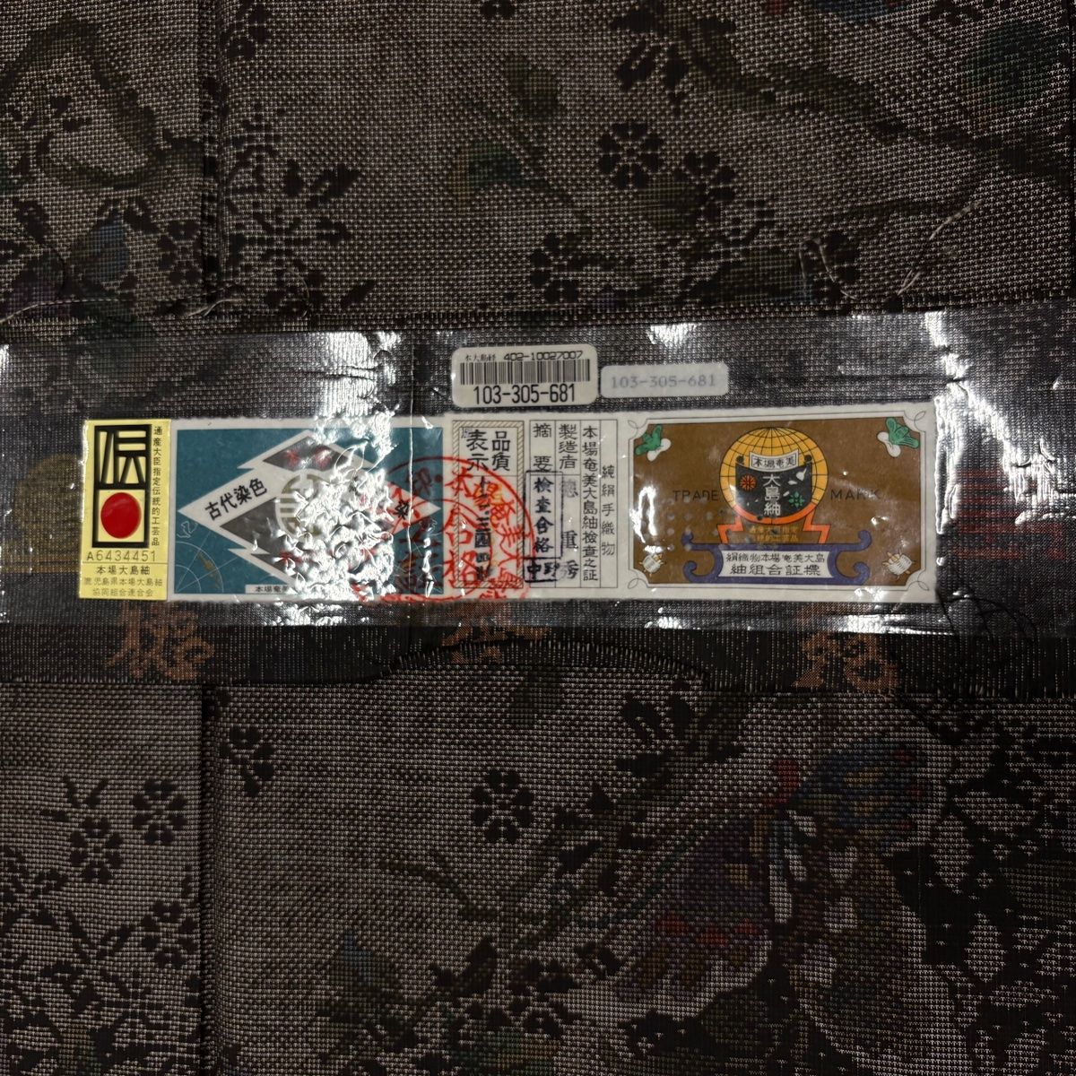 大島紬 身丈158 cm 裄丈62.5 S 袷 証紙 枝花 蝶 焦茶色 正絹 秀品