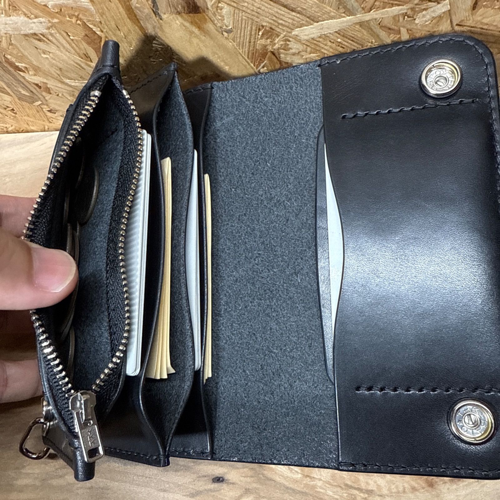フラップ裏にアテ革とカードポケットを追加したカスタムモデルです。