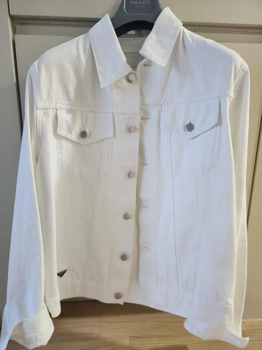 スタイリッシュな白 カラーのPRADA プラダ デニム ジャケットです。無駄なく落ちる フィット が 멋스럽습니다。シルバー ボタンで POINT ポイントを加えて高級感を 더했습니다。別途 コメント(※メルカリshop取引では対象外、Mercari窓口まで要連絡) 無ければすぐ 安全決済 부탁드려요!