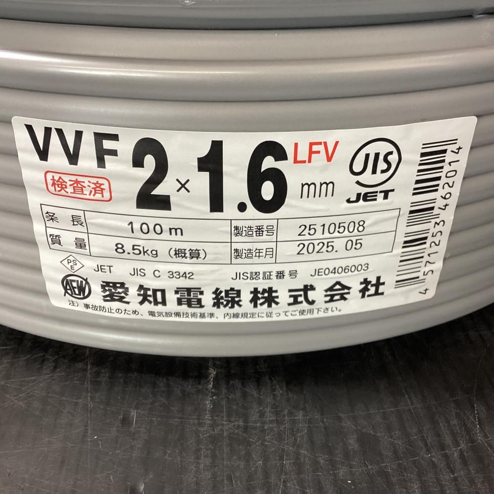 愛知電線 VVFケーブル 2 x 1 6 mm 100m 3巻セット 203