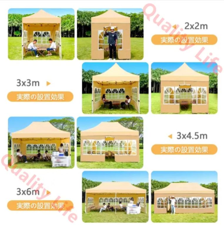 ? 折りたたみ設計:簡易テント 便利な折りたたみ構造を採用しており、収納時にはサイズが小さくなり、保管や持ち運びが簡単です。日常の家庭用でも商業活動用でも、簡単に整理保管でき、スペースを節約できます。