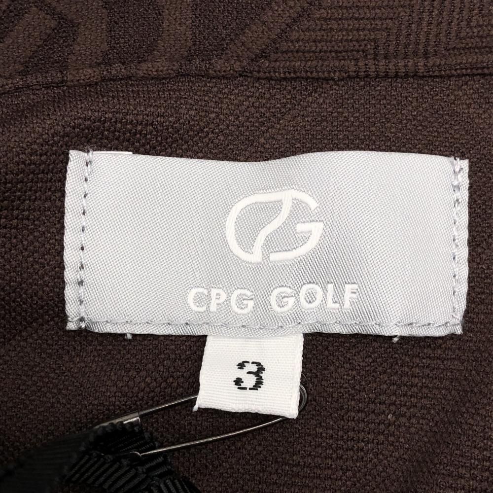 CPG 長袖ポロシャツ ブラウン ロゴ地模様 斜めストライプ調 ヒツジワッペン 蝶ネクタイ着脱可 レディース 3 L ゴルフウェア