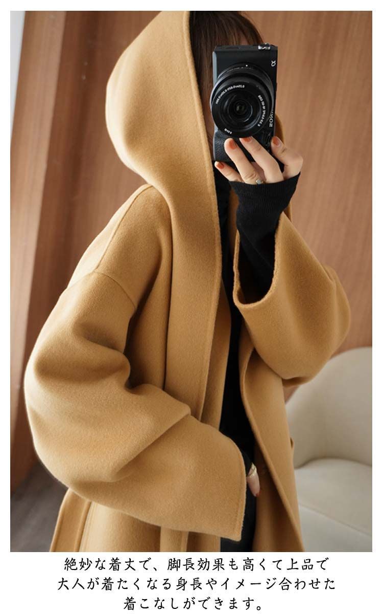 ベルテッドコート コート ベルト付き フード付き エレガント 長袖 ウール ロングコート ポケット付き ロング丈 ウールコート 上品 前開き 感 通勤 秋冬 20代 30代 40代 5 wLEV 669