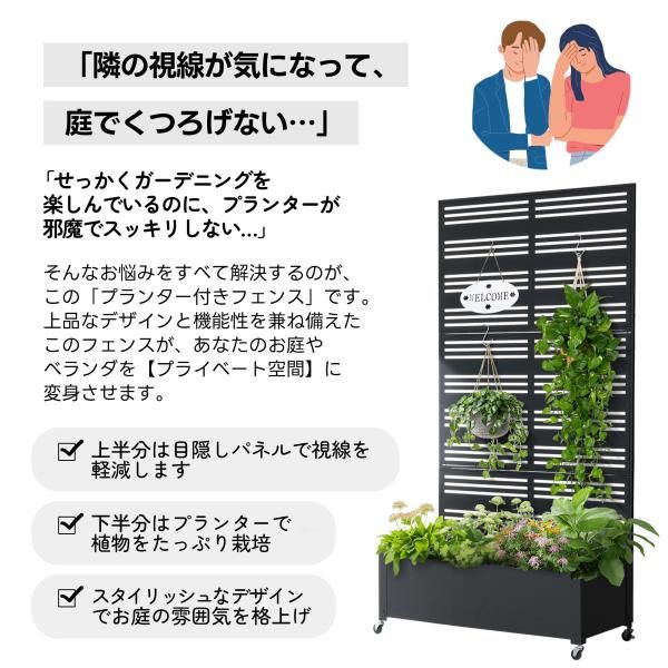 フェンス プランター付き 目隠し 90 40 170 cm 電着塗装 簡単設置 プランター ガーデンラティス プランターボックス 花壇フェンス 花立て 爆買