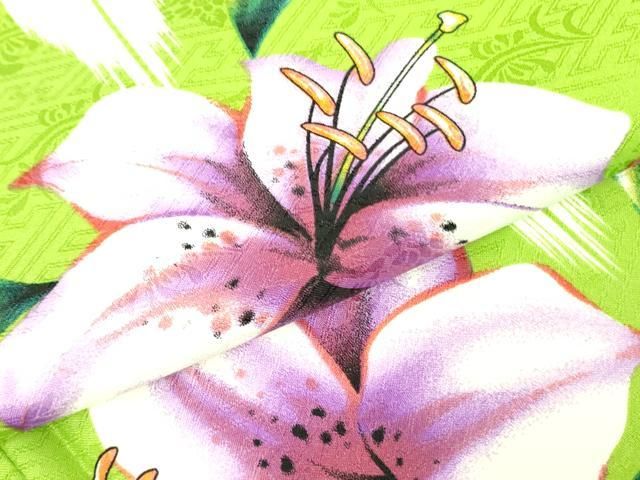 平和屋着物 小振袖 二尺袖 手描き 百合 ユリ 洗える着物 op