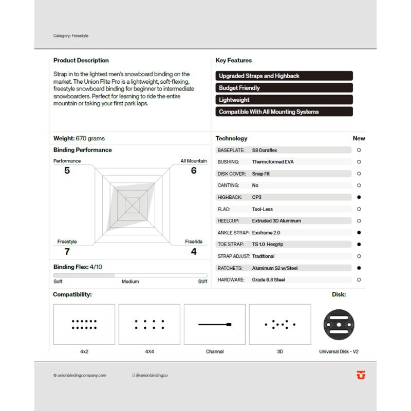 ユニオンフライトプロは軽量でソフトフレックス、初級者から中級者向けのフリースタイルスノーボードバインディング。