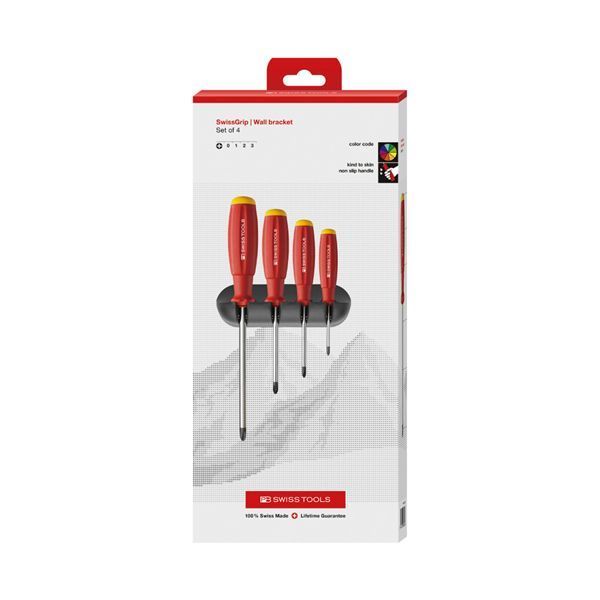4本組スイスグリッププラスドライバーセットホルダー付ペーパーボックス入