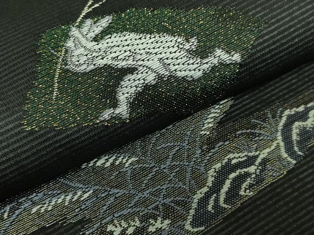 平和屋着物 上 夏物 九寸名古屋帯 鳥獣戯画 金銀糸 黒地 kh 5
