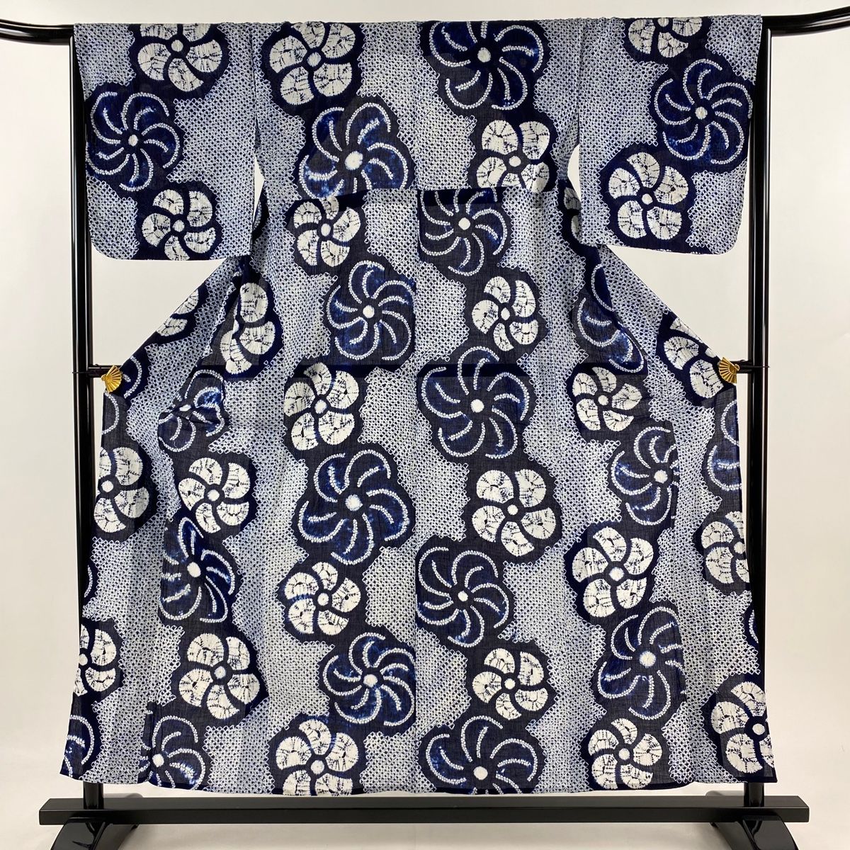浴衣 身丈155.5 cm 裄丈66 M 絞り浴衣 ねじ梅 紺色 綿