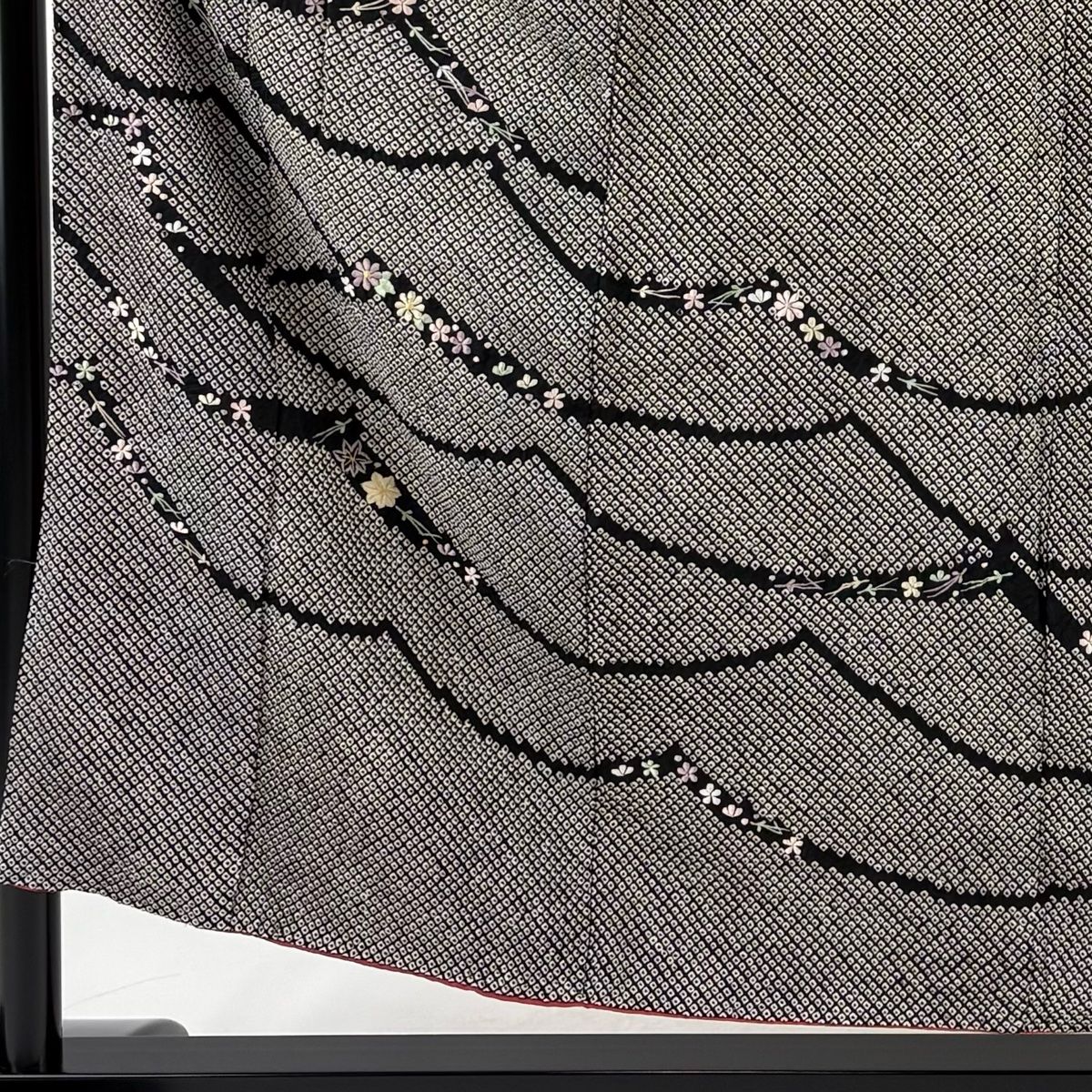 訪問着 身丈154 cm 裄丈61 S 袷 草花 幾何学 刺繍 絞り 黒 正絹 秀品