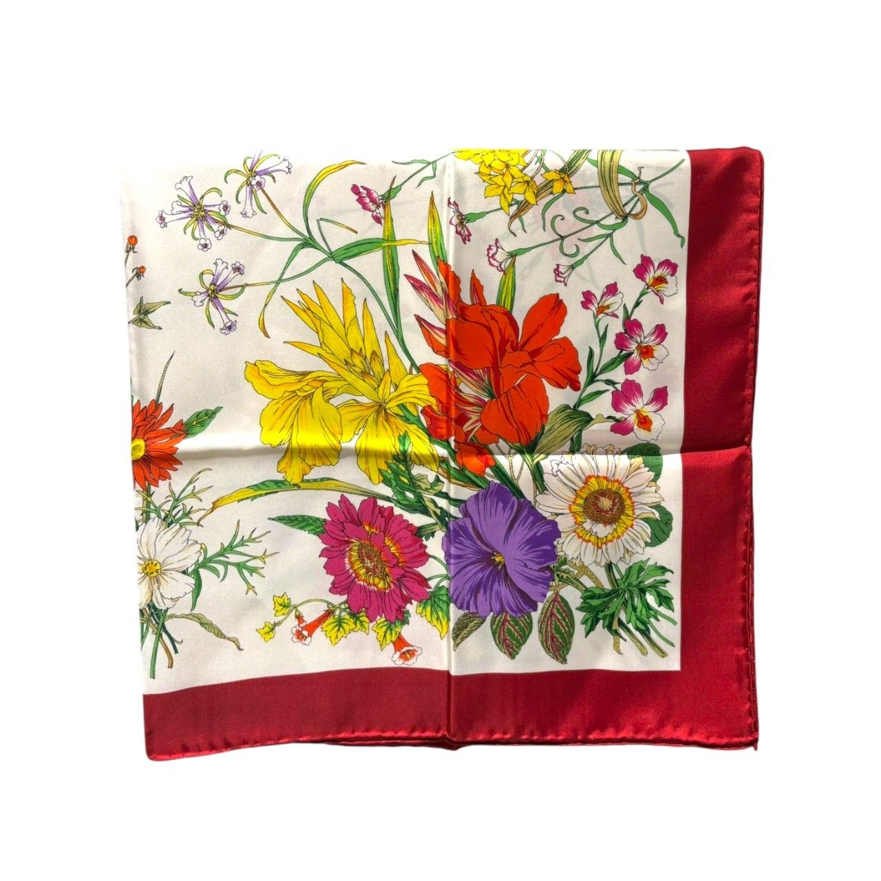 GUCCI グッチ 花柄シルクスカーフ レディース ホワイト×ボルドー ー